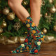 Wrap their feet in holiday magic with these elegant Christmas socks, covered in a rich dark-green pattern of pine branches, poinsettias, holly berries and shiny ornaments. At the top of each sock there are two discreet text areas, left and right, so you can add names or initials for each wearer. The deep colors and black toe and heel give a cozy, premium look that works for festive outfits, Christmas morning photos or coordinated family pajamas. A charming holiday gift for adults, teens and kids who love classic Christmas style with a personal touch.