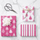 Festive Pink and White Christmas Tree Pattern Geschenkpapier Set