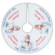 Ein festlicher Weihnachtsbaumrock, gemustert mit einem Aquarellbild eines Schneemanns und "Frohe Weihnachten" in roter Schriftzeichen. Personalisieren Sie den Namen, der um den Rand des Rockbaums angezeigt wird.