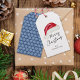 Dieses minimale "Frohe Weihnachten"-Geschenk-Tag bietet eine handgezeichnete Weihnachtsmannmütze auf der Vorderseite und lustige hellblaue Poinsettias auf einem dunkelblauen Hintergrund auf der Rückseite, die eine Touch nostalgischer Launen. Originelle Kunst von Malissa Melrose.
