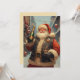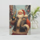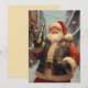 Der Weihnachtsmann, in festlichem Ambiente mit goldenen Schneeflocken und einem traditionellen roten Hut gekleidet, steht in einer schneebedeckten Urlaubstrasse. In der einen Hand hält er eine Flasche Champagner und in der anderen ein Glas Sekt, das Freude und Beifall ausstrahlt. Im Hintergrund sind die Gassen mit roten Ornamenten und strahlenden Lichtern geschmückt, die die zauberhafte Atmosphäre der Weihnachtszeit einprägen. Schnee fällt sanft, was das festliche Ambiente noch verstärkt.