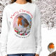 Genießen Sie den festlichen Charme des Rotkehlchens mit diesem köstlichen Weihnachtspulli. Die Top fotografiert eine europäische Rotbrust in einem runden "Rahmen", sitzend auf schneebedeckten heiligen im Winter. Die Worte "Frohe Weihnachten" sind oben, und es gibt Text unter dem Bild, um mit Ihrem Namen oder anderen Text personalisieren (wenn nicht erforderlich, löschen Sie einfach den Standardtext). Dieses Sweatshirt ist voll warmer Tradition und saisonalem Beifall und ist ein ideales Geschenk für Naturliebhaber.