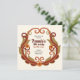 Geburtstagsfeier mit festlichem, Vintagem Stil. Der Rahmen ist halbkreisförmig und mit Spiralen, Blätter, Blume und anderen Zierdetails dekoriert. Das Design wird von Hand gezeichnet, zuerst auf Papier und dann wieder in einem Vektorgrafik-Editor. Um das Vintage Aussehen zu verstärken, wählte ich eine erdige Farbpalette (rostige Brauntöne und Orange plus Olivgrün), aber da es sich um ein Vektordesign handelt, kann man diese Farben tatsächlich verändern. Klicken Sie einfach auf Personalisieren und öffnen Sie das Design-Tool, um mit der Anpassung der Dinge zu beginnen.