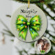 Festliche grüne Furry Bow-Lights Schönheit oder schöne Keramik Ornament. Dieses urbane Dekor präsentiert einen verschwommenen grünen Bogen, der in Mini-Lampen eingewickelt ist und eine skurrile Touch verleiht. Die Phrase "Naughty oder Nice" wird vorgestellt, perfekt für einen spielerischen Saisonauftritt. Auf der Rückseite ist für Ihr liebstes Foto Ihrer frechen oder netten Menschen oder Haustiere, sodass es ein einzigartiges festliches Dekor oder Weihnachtsgeschenk!