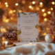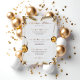 Gestalten Sie Ihr eigenes Weihnachtsmenü mit unserer raffinierten Vorlage, die goldene Weihnachtsdekorationen und grüne Akzente in einem weißen Rahmen mit Prägung zeigt, mit der Möglichkeit, den Textstil zu personalisieren.