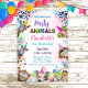 Cute Safari fête animaux rose, bleu, vert, violet guépard invitation pour fille.