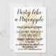 Fête Comme un ananas Destination tropicale 16e anniversaire Invitation. C'est une invitation parfaite pour un anniversaire de seizième anniversaire à thème Ananas. L'ananas est un faux feuille d'or et un arrière - plan blanc avec un script texte écrit à la main superposé. Le texte peut être customisé avec vos informations. Veuillez contacter le concepteur si vous souhaitez faire correspondre les éléments customisés.