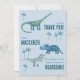 C'est l'heure de remercier vos invités pour une fête d'anniversaire sauvage ! Un groupe amusant de dinosaures adorables, prêts à être personnalisés avec le nom de votre enfant et votre message de remerciement. Parfait pour les garçons ou les filles de tout âge. Le dos présente un motif de dinosaure assorti. Œuvre originale de Nic Squirrell.