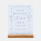 Rendez votre shower de mariage encore plus amusant avec ce panneau en acrylique personnalisé "Devinez combien de baisers" avec un nœud bleu ! Doté d'un design élégant de nœud, il complète parfaitement votre thème de shower de mariage avec des nœuds. Ce panneau élégant ajoute une touche ludique à votre thème de shower de mariage "quelque chose de bleu" et s'intègre parfaitement avec le thème de shower de mariage "attacher le nœud". Que vous recherchiez un thème "quelque chose de bleu avant moi" ou des idées pour un shower de mariage "attacher le nœud", c'est l'ajout parfait à votre shower de mariage bleu. Un incontournable pour le thème de shower de mariage "elle attache le nœud" et les idées de shower de mariage "quelque chose de bleu" !