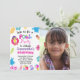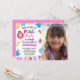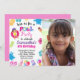 Adorable bubbly fun filles piscine invitations de fête avec téléchargement de photo. Fleurs mignonnes, crème glacée et graphismes d'été pour ce mignon invitation.