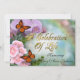Célébration de la vie Invitation avec papillons et belles fleurs. Orchidées de lavande et roses roses sur un arrière - plan doux et flou avec poème Simple invitant invités et amis à partager un brunch pour commémorer et célébrer la vie d'un être cher qui est passé. Le texte est entièrement personnalisable. Changez pour convenir à votre lieu.