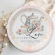 Servez le charme avec cette élégante assiette en papier "L'amour est dans l'air" pour une fête de mariage ! Avec une théière florale vintage, une tasse à thé, des roses blush et des détails en or en forme de volutes, ce design aquarelle doux apporte une touche charmante à votre table de fête de thé. Personnalisée avec le nom de la mariée et la date de la fête, c'est le mélange parfait de beauté et de fonctionnalité pour une célébration élégante.