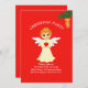 Petit ange de Noël sur invitation rouge. Le texte est prêt à être personnalisé.
