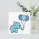 Faire-part de naissance bleu bébé éléphant. Dessin mignon sur le devant. Modèle de texte modifiable à l'arrière.