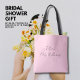 Ce sac fourre-tout rose vif moderne dispose d'une police manuscrite cool qui peut être personnalisée avec le nom de votre épouse. Un cadeau parfait pour une douche nuptiale ou une mariée à être.