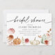 Invitation à la douche nuptiale avec citrouilles d'aquarelle et fleurs bordeaux. Customisez avec vos informations pour que la mariée soit mariée.