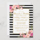 Aquarelle rose Blush Gold et Black & White rayures Fête des mariées florale Brunch & Bubbly Invitation Card