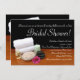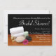 Invitations de douches nuptiales spas, idéal pour une soirée de mani pedi ou une sortie pour dames. Spa élégant, massothérapie ou aménagement de salon. La scène de la vie comprend des articles qui seraient utilisés pour un traitement spa, y compris des sels de bain minéral trempé, de l'huile de corps parfumé ou naturel, des pierres chaudes pour le massage chauffé, des serviettes blanches propres et une jolie fleur rose, sur une table en bois avec arrière - plan noir. Profitez d'une journée de détente nuptiale et de luxe de spa apaisant, pédicure et services faciaux. Ce design est disponible sous forme de collection complète comprenant des articles promotionnels d'entreprise, papeterie, cartes de visite, drinkware, cadeaux, et plus encore!