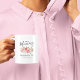 La tasse à café moderne de la journée de la mère est ornée de l'adage mignon "cette maman appartient à", de fleurs d'aquarelle rose rustique, et des noms d'enfants.