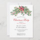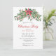 Invitation de Noël invitation de fête de Noël avec des baies d'hiver aquarelle, fleur de poinsettia, pin et feuille et un côté arrière rouge.