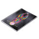 Un abstrait coulant de couleur brillante encadré d'or et bourré de diamants et de perles. Des flots brillants sinueux de courbe rouge, jaune, vert, bleu, violet et rose, sillonnant d'une grande perle jusqu'à la pointe, accentués à la fin par un éclat d'étoile. Cette conception arc-en-ciel est posée contre un arrière - plan de soie noire.