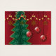 Des couches de fractales composent ce design de Noël stylisé. Une toile de fond rouge muet, un arbre vert épicé, des étoiles dorées et des flocons de neige suspendus à un fil de perles rouges et d'or, et trois boules rouges avec un design doré tourbillonnant accroché devant.