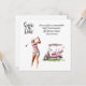 Célébrez avec style avec cette carte "Save the Date" amusante et féminine pour une fête sur le thème de golf féminin ! Avec un design élégant et des détails inspirés du golf, c'est parfait pour les anniversaires, les enterrements de vie de jeune fille, ou simplement une journée entre filles sur le green. Personnalisez-la avec les détails de votre événement et rendez votre occasion spéciale inoubliable.