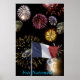 Das französische Drapeau Tricolore inmitten eines Feuerwerks aus Bastille.
