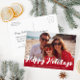 Tendance moderne blanc heureux vacances stylish script carte photo modèle personnalisé. Customisez le texte et les détails de l'image.
