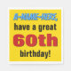 Dieses auffällige, kühn zum Geburtstag gehaltene Papier-Serviette-Design enthält eine Nachricht wie "A-Name-Here, have a great 60 th year!", in der Name und Geburtstagsnummer personalisiert werden können. Papierservietten wie diese können in einem Party zum Geburtstag von jemandem verwendet werden.