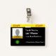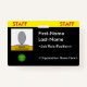 Dieses kühn und auffällig gestaltete Abzeichen des Personals bietet bearbeitbare Informationen wie ein Portrait-Foto, ein Firmenlogo, einen Namen des Mitarbeiters und einen Rollennamen. Ein solches Abzeichen könnte dazu verwendet werden, jemanden als Mitarbeiter eines Unternehmens, Unternehmens oder einer Organisation zu identifizieren. [~Z0000450]