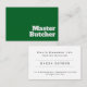 Fett formatierte und klare typografische Visitenkarten für ein Butcher-Shop-Einzelhandelsgeschäft. Entworfen, um Ihre Professionalität in Ihrem Master Metzger Geschäft zu vermitteln.