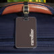 Dieses personalisierte Gepäckschild zeigt einen reichhaltigen braunen Hintergrund mit elfenbeinfarbener Creme-Typografie in einem einfachen, modernen Layout. Passen Sie den Namen an, um ein nützliches Reisetail für Gäste einer Hochzeitsdestination, Willkommensgeschenke oder Gruppenreisen zu erstellen. Die neutrale Farbpalette passt leicht zu klassischen oder modernen Hochzeitsthemen und fühlt sich für alle Altersgruppen angemessen an. Ein praktisches Andenken, das Gäste noch lange nach der Feier weiter verwenden können.