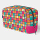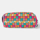 Die Kosmetiktüte ist mit einem farbenfrohen Flickwerk mit gleichgroßen Quadraten gestaltet. Die Quadrate sind in einem Rastermuster angeordnet, was ein lebendiges und auffälliges Erscheinungsbild schafft. Neben seiner traditionellen Verwendung als Schminktütenlager kann dieses farbenfrohe Patchwork-Design für verschiedene Lagerzwecke angepasst werden, wie z.B. Pen und Bleistift, Nähkit, Personal Care Items und mehr.