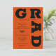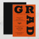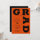 GRAD in fett schwarzen Buchstaben Kurven rund um die Kanten dieser orangen Hintergrund Graduation Party Einladungen. SIEHE GANZE SAMMLUNG von vorgefertigten Farbkombinationen, Papier-Teller, Servietten, Gunst-Boxen und Graduierungsparty Einladungen in unserem Shop.