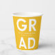 Personalisierte Abschluss-Papiertassen mit "Grad" in fett weißer Schrift mit gelbem Hintergrund oder Farbe Ihrer Wahl. Personalisieren Sie die Papiertassen des Abschlusses, indem Sie den Namen des Absolventen und das Abschluss Jahr. Die gelben Abschluss-Papiertassen sind sowohl für Uni-Abschluss- als auch für Highschool-Partys geeignet.