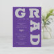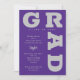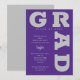 GRAD in fett-graue Schriftzeichen rund um die Ränder dieser lila Hintergrund Graduation Party Einladungen. SIEHE GANZE SAMMLUNG von vorgefertigten Farbkombinationen, Papier-Teller, Servietten, Gunst-Boxen und Graduierungsparty Einladungen in unserem Shop.
