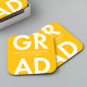 Maßgeschneiderte Abschluss-Papier-Untersetzer mit "Grad" in fett weißer Schrift mit gelbem Hintergrund. Personalisieren Sie die Abschluss Untersetzer, indem Sie den Namen und Abschluss des Absolventen Jahr. Die personalisierten Abschluss Untersetzer sind sowohl für Uni-Abschluss- als auch für Highschool-Partys geeignet.