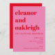 Kühne Typografie Bright Pink und Red Modern Wedding Einladung mit Ihrem QR Code auf der Rückseite.