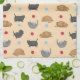 Niedliches illustriertes Muster mit klobigen Katzen in verschiedenen Posen. Jede Katze Illustration getrennt durch Wollbälle. Dieses Handtuch wäre ein großartiges Geschenk für einen Katzenliebhaber.