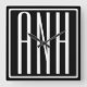 Fett Modern 3 Initialen Monogramm | Schwarz weiß Quadratische Wanduhr