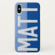 Lassen Sie Ihre Wahl des Namens kühn auf einem zweifarbigen Telefongehäuse dargestellt. Beispiel zeigt den Namen Matt. Personalisieren Sie Ihre Auswahl an kurzen Namen.