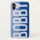 Lassen Sie Ihre Wahl des Namens kühn auf einem zweifarbigen Telefongehäuse dargestellt. Beispiel zeigt den Namen Bobby. Personalisieren Sie Ihre Auswahl an kurzen Namen.