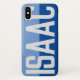 Lassen Sie Ihre Wahl des Namens kühn auf einem zweifarbigen Telefongehäuse dargestellt. Beispiel zeigt den Namen Isaac. Personalisieren Sie Ihre Auswahl an kurzen Namen.