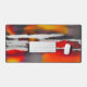 Diese farbenfrohe, moderne abstrakte Schreibtischmatte besticht durch fette Rot- und Gelbtöne mit Schwarz und Weiß. Diese auffallende Matte hat eine zeitgenössische, moderne Ästhetik und ist die perfekte Ergänzung zu allen Büros, Arbeitsräumen, Zuhause-Büros, Studentenwohnheimen oder -höfen.