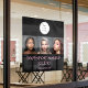Verblüffen Sie Ihre Kunden mit dieser Foto-Fensterfolie mit eleganter Typografie in fett schwarz und rosé zusammen mit Ihrem Logo, plus 3 Fotos Ihrer Wahl und Ihren Informationen.