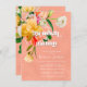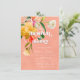 Helles und feines Brunch und blühendes Brautparty oder Kinderdusche. Helles und feines florales botanisches Arrangement mit den Farben Gelb, Pfirsich, Pinks und Weiß vor einem pfirsichkorallenbespannten Hintergrund. Wunderschön für Frühling, Sommer, Boho oder Garten Babydusche, Brautparty oder jede Gelegenheit mit Brunch und Champagner!