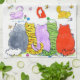 Eine wunderliche Ansicht der Bonzen bildet das Gesamtmuster für dieses bunte Geschirrtuch.