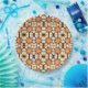 Diese atemberaubende Blumenillustrierung weist übergroße, Retro-inspiriert Blume in Orange-, Gelb-, Blau- und Cremetönen auf, die auf einem dunklen Hintergrund dargestellt sind. Die stilisierten, Cartoon-ähnlichen Blüten schaffen ein spielerisches, aber kühnes Design