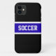 Dieses sportliche Design zeichnet sich durch einen blauen, horizontalen Mittelstreifen aus, der in weißen pinstripes umrissen ist und zwischen den angrenzenden schwarzen Streifen zentriert ist. Große, fette Typografie "SOCCER"-Text im Mittelstreifen kann personalisiert werden.